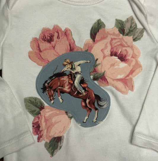 Range Rider & Roses on Long Sleeve Onesie, Size 0-3 mons.