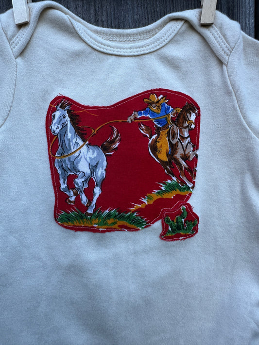 Wild Horse Roper on Cream Onesie, Size 3-6 mons.