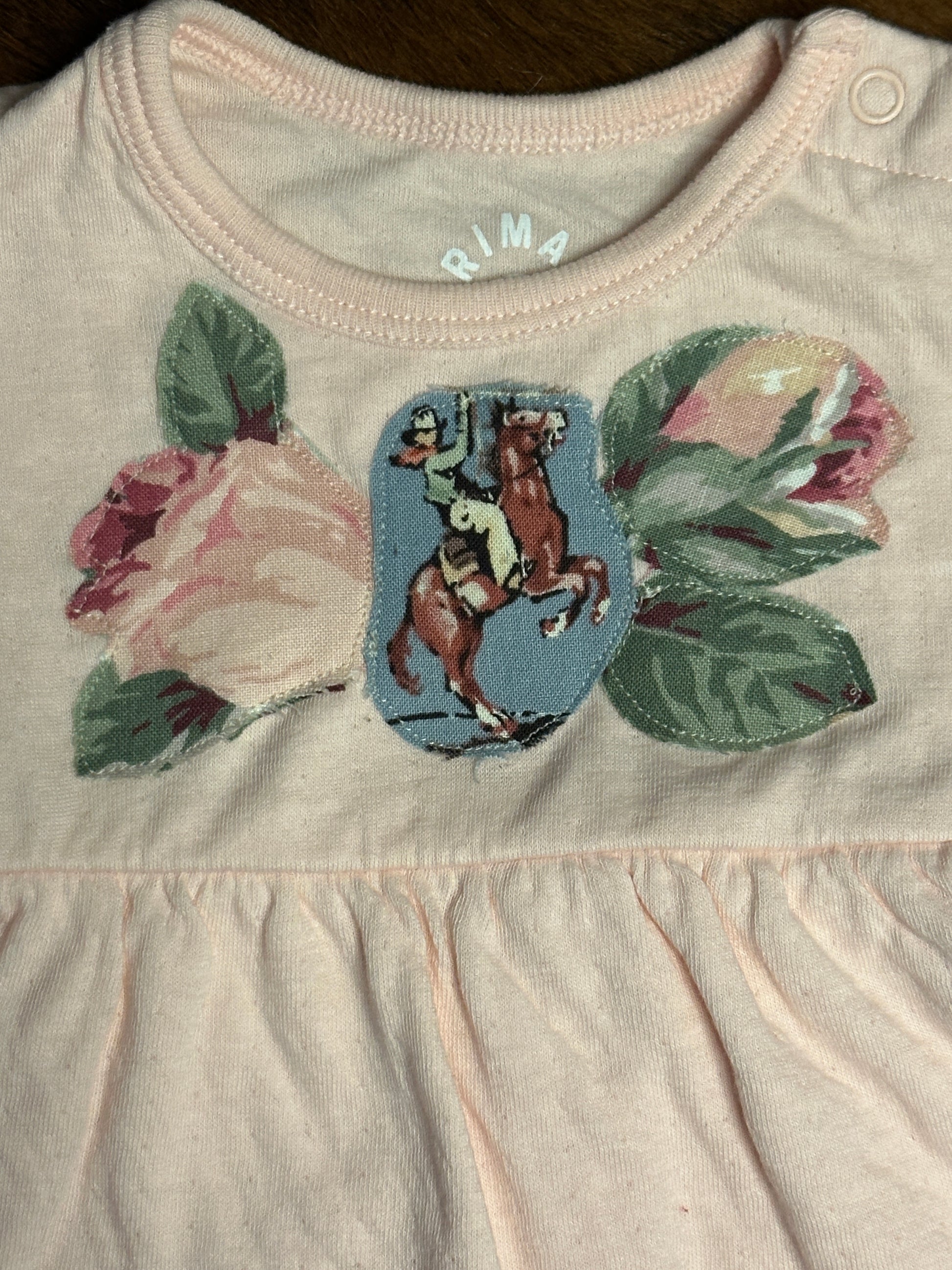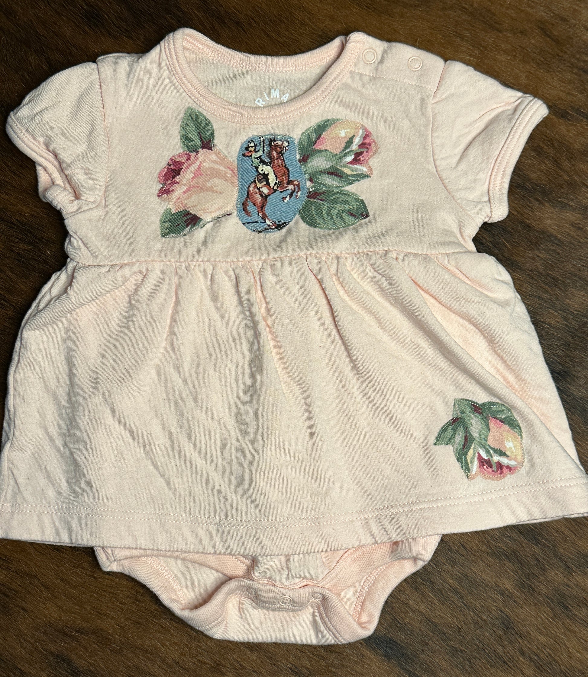 Ballerina Pink Pointelle Dress with Rearing Horse & Rose Buds, Size 0-3 mons.