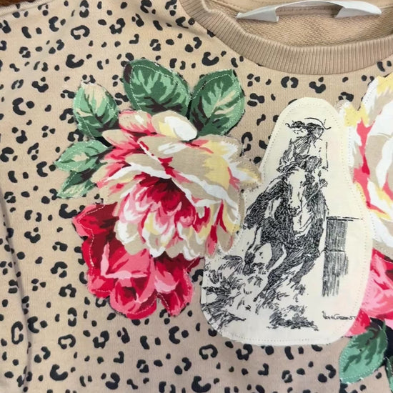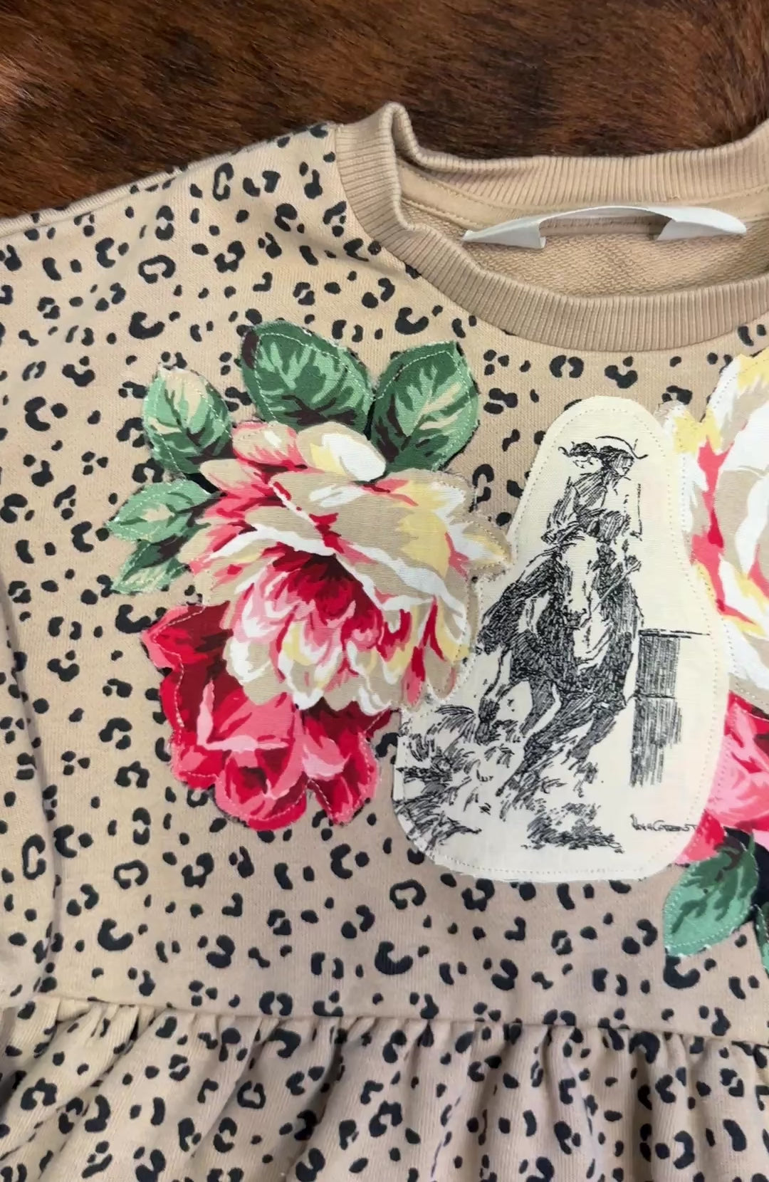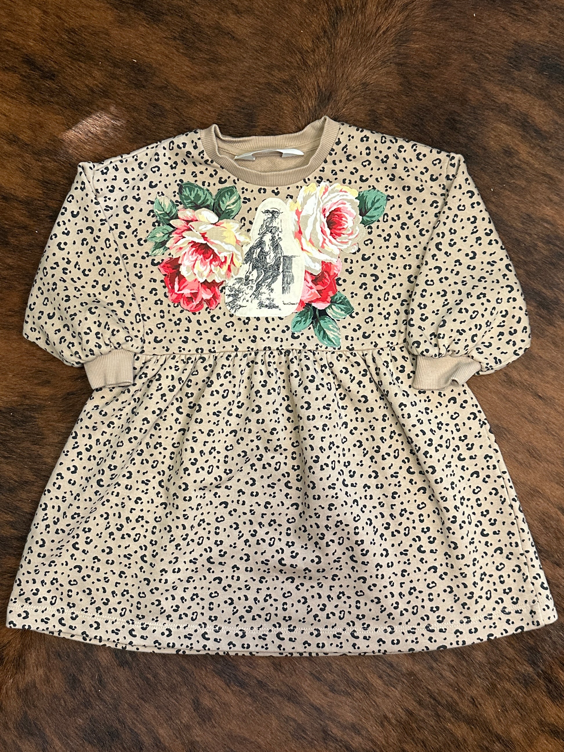 Barrel Racer and Roses on Leopard Sweatshirt Dress, Size 2T