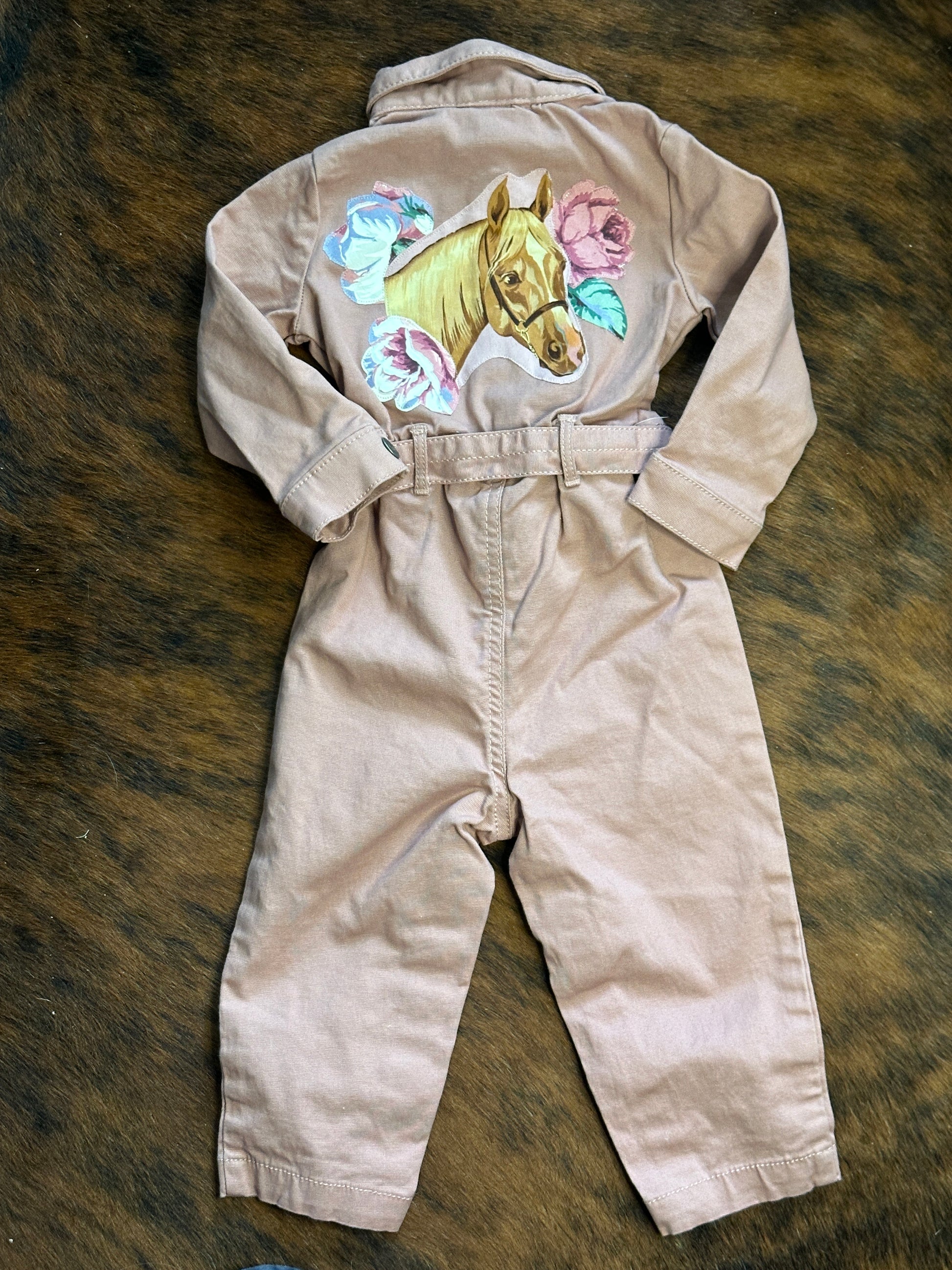 Horse Portrait and Roses on Pink Jumpsuit, Size 18 mons. #3