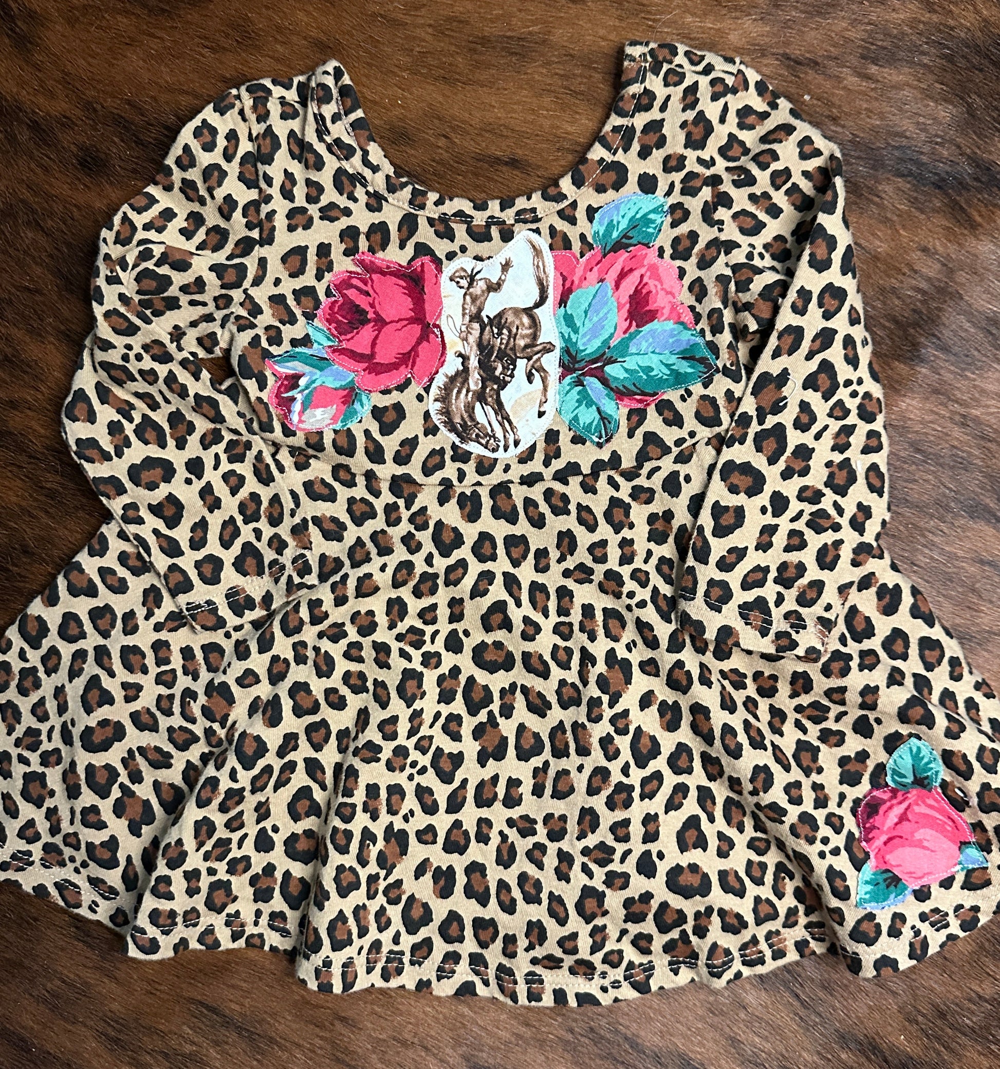 Bronc & Roses on Leopard Twirl Dress, Size 12-18 mons.