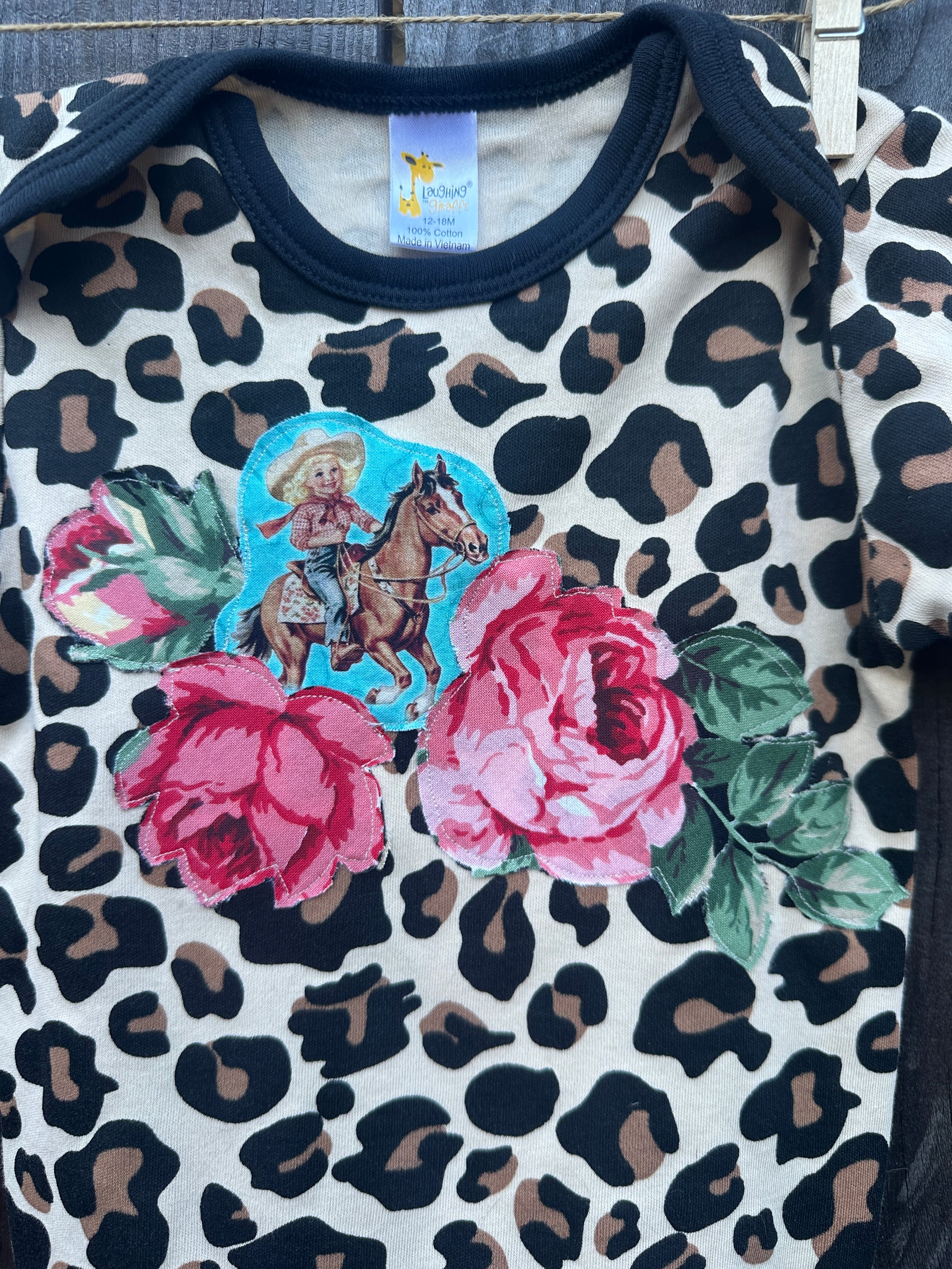 Leopard Cowgirl and Roses Onesie, Size 12-18 mons.