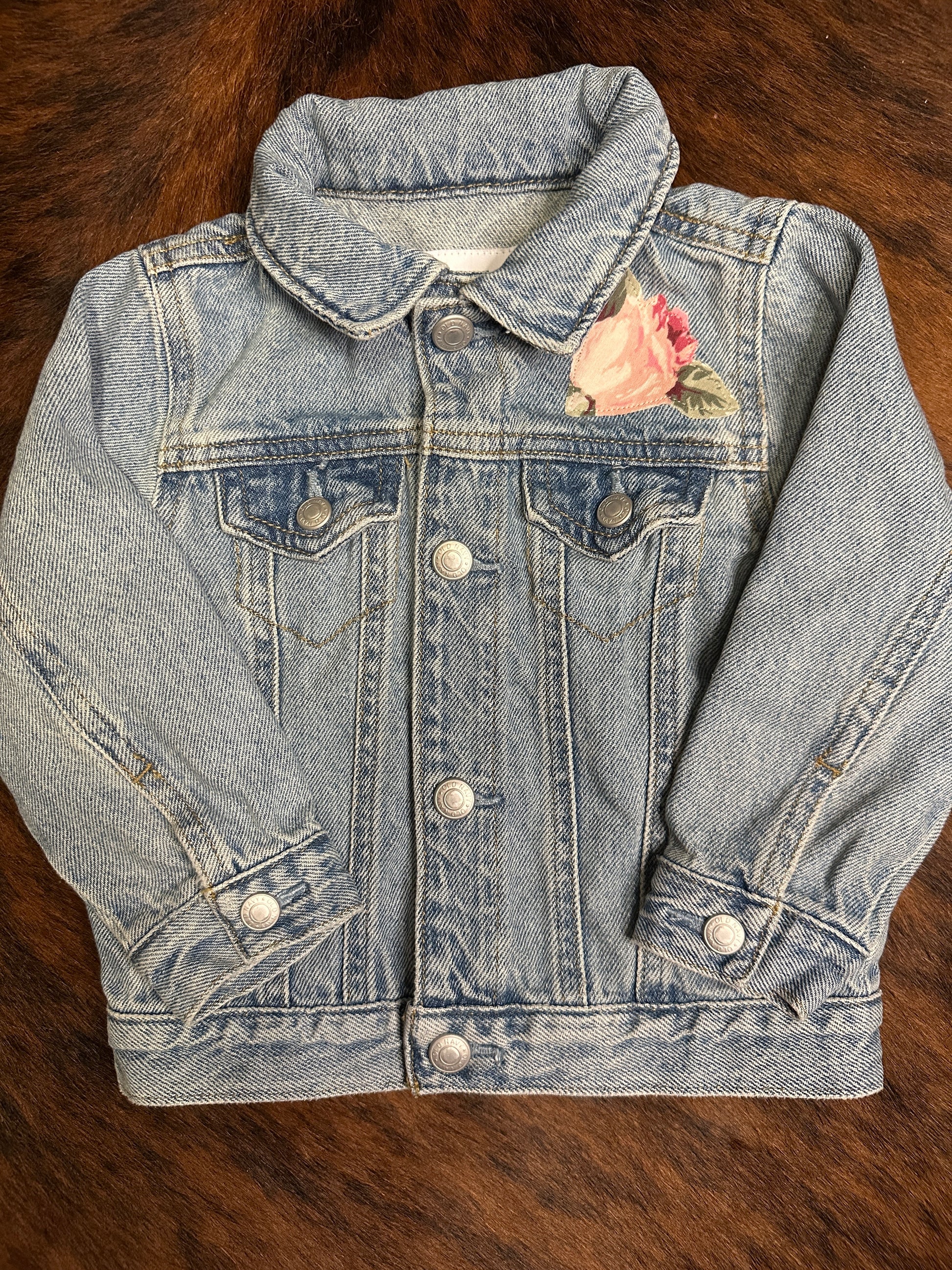 Denim Jacket with Horse Portrait and Pastel Roses, Size 18-24 mons.