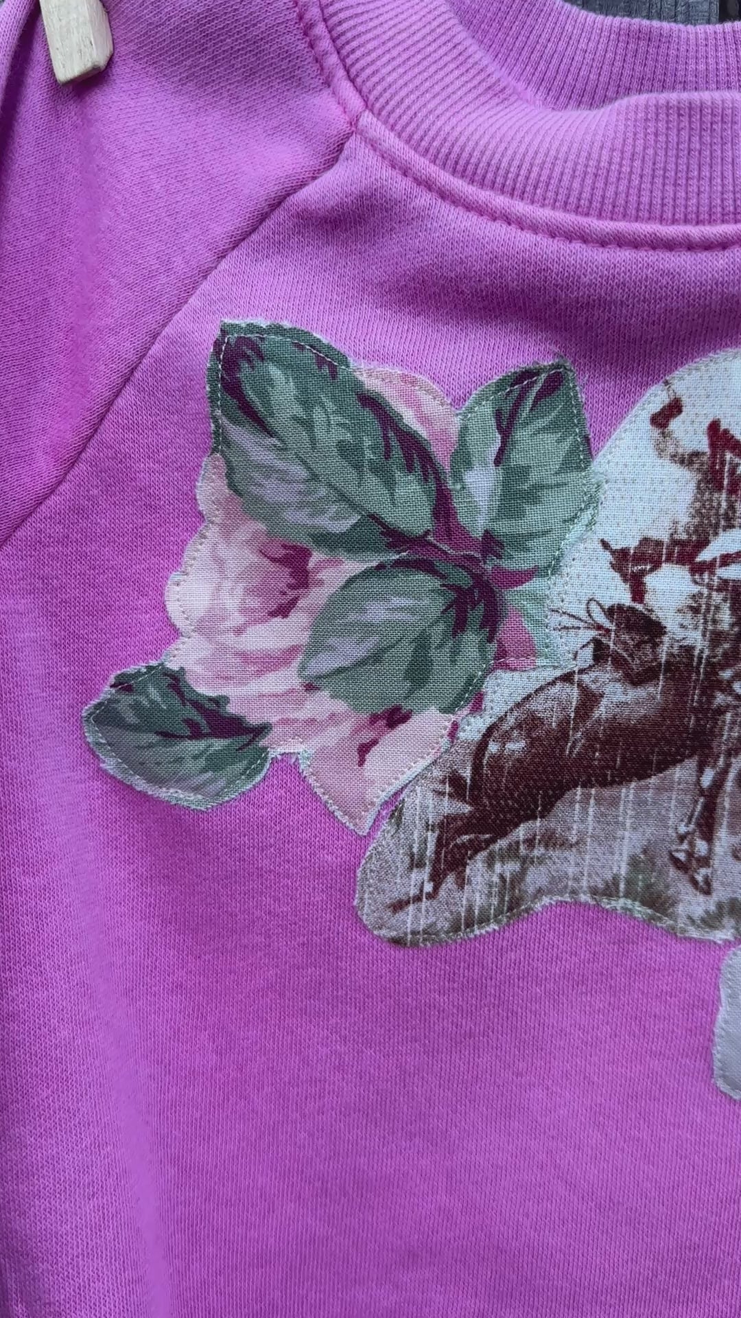 Pink Bronc & Roses Sweatshirt Onesie, Size 6-12 mons.