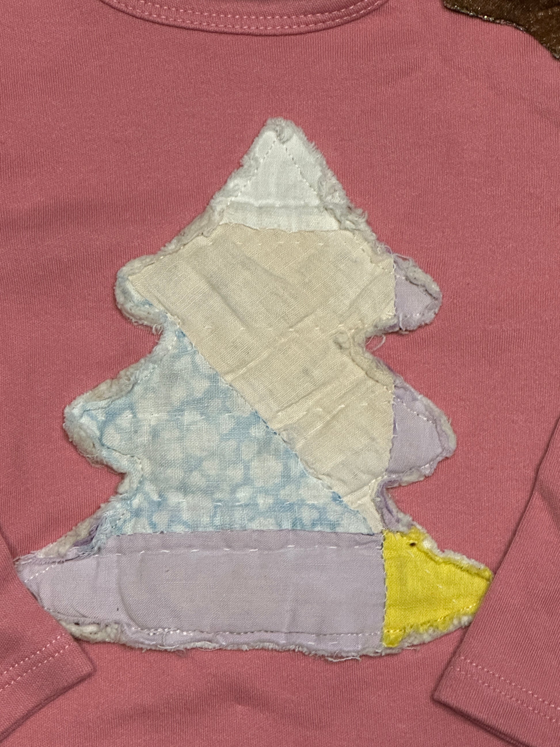 Upcycled Christmas Tree Long Sleeve Onesie, Size 6-9 mons.