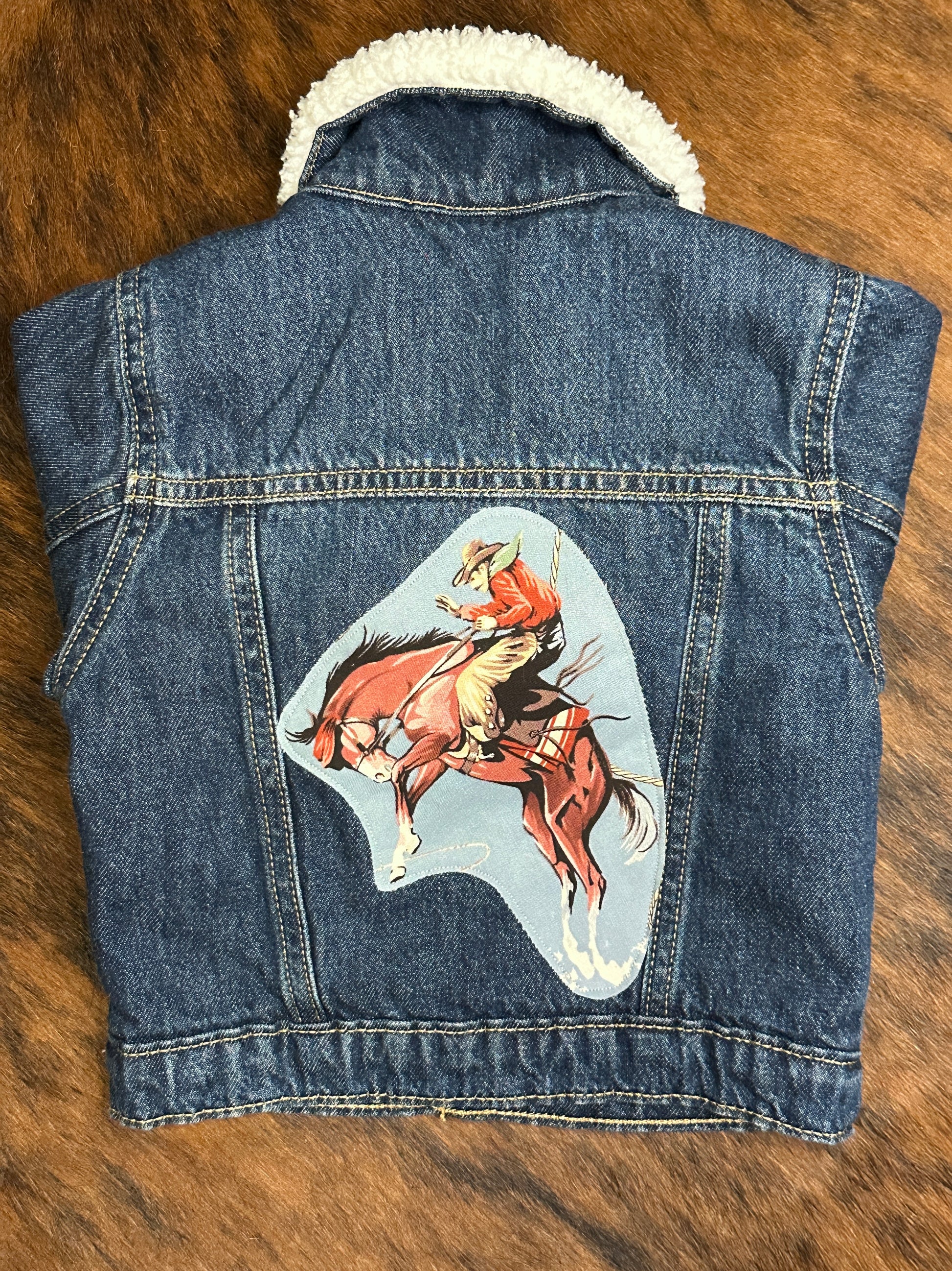 Vintage Bronc Rider on Denim Sherpa Lined Jacket, Size 12-18 mons.